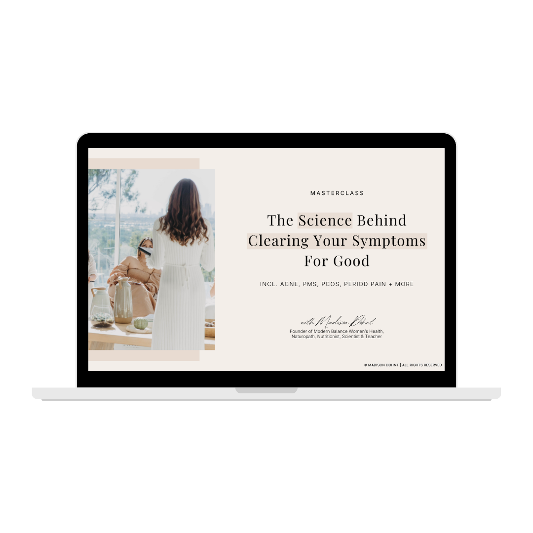 This is a 60-minute science-backed workshop with Naturopath, Nutritionist, Biologist and Women’s Health Specialist, Madison Dohnt, walking you through: